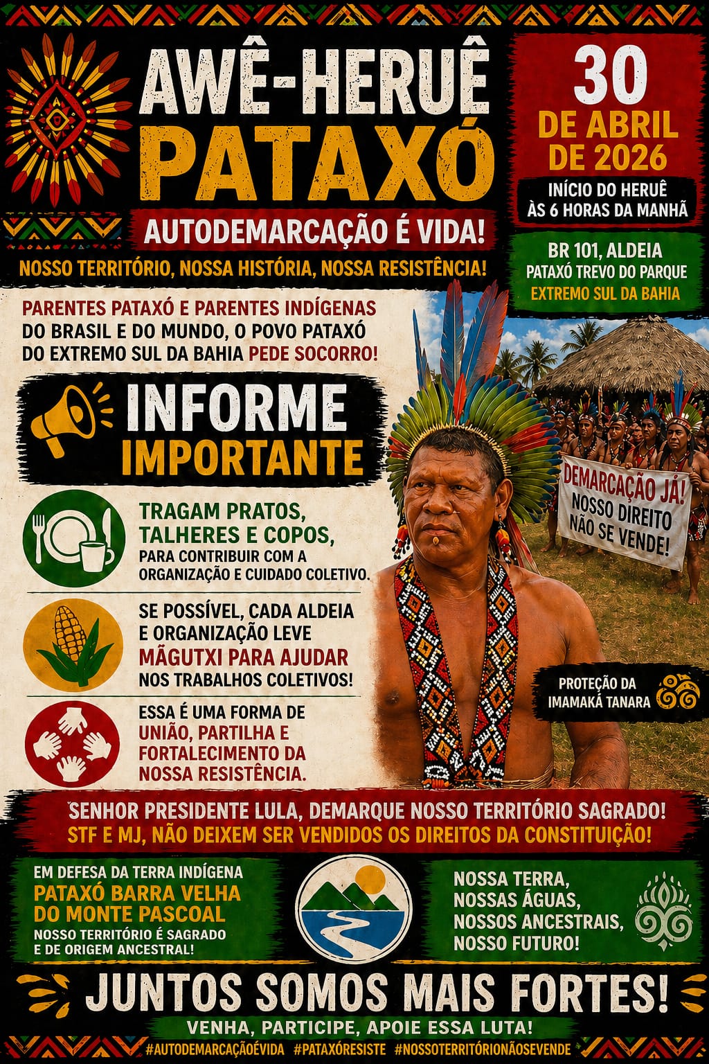 Convite do povo Pataxó para bloqueio da BR 101 em prol da liberdade do cacique Suruí e outras lideranças indígenas criminalizadas.